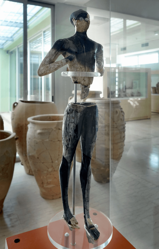 이상적인 젊은 엘리트 남성상을 묘사한 다른 미노스 조각상들과 유사하다.