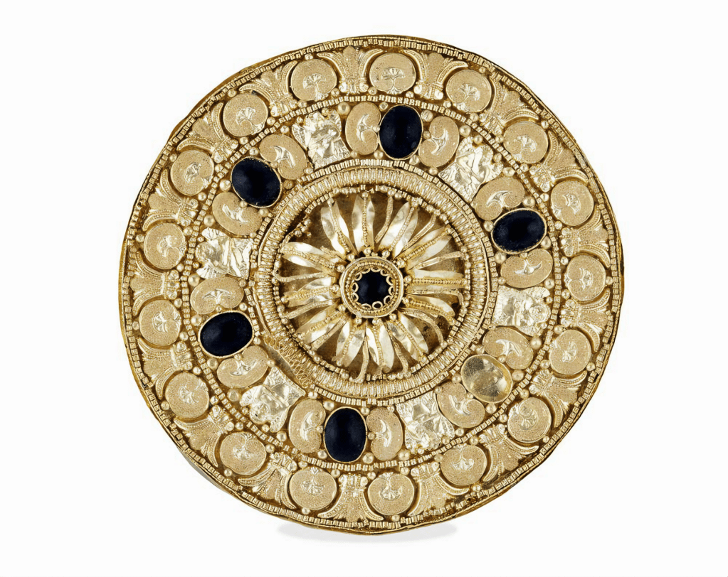 후기 고대 시대 late Archaic period로 거슬러 올라가는 이 작품은 에트루리아 보석 제작 기법과 예술적 모티프를 잘 보여주는 명품이다.