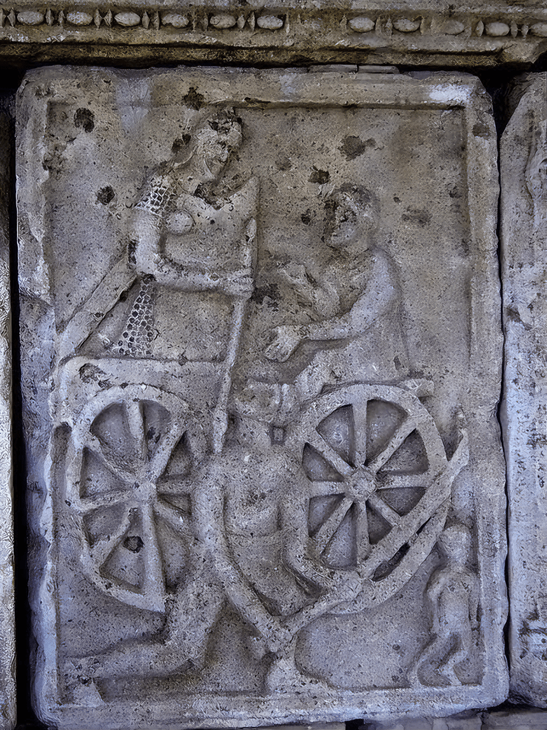다키아Dacia에서 팔크스를 접한 로마인들은 그 강력한 타격을 견딜 수 있도록 투구를 강화했다.