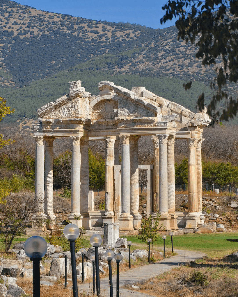 이 아프로디시아스에 위치한 테트라필론Tetrapylon은 서기 2세기 안토니우스Antonine 시대에 건설되었으며, 아프로디테 신전 성역으로 통하는 기념비적인 문이다.
