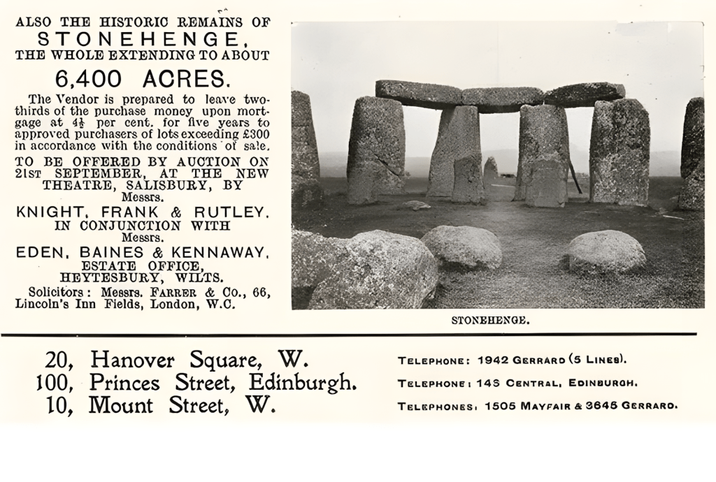 전쟁 중 이 가문의 영지 매각에는 우연히 ‘스톤헨지의 역사적 유물’이 포함되어 있었는데, 이는 컨트리 라이프Country Life 지면에 실린 매혹적인 역사적 하이라이트였다.