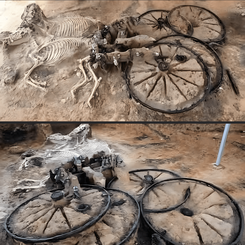 An 2000-Year-Old Thracian Chariot With Horse Skeletons Found in the Village of Karanovo, Bulgaria .