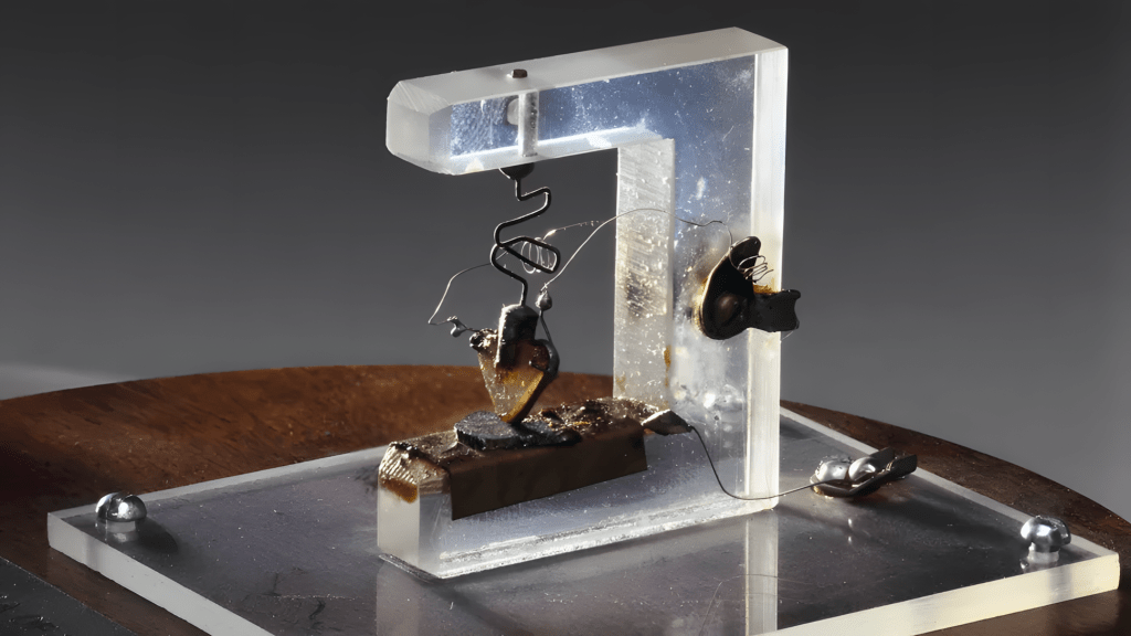 브래튼은 신호를 100배 증폭시키는 인상적인 결과를 얻기 위해 트랜지스터를 “정확히” 움직여야 했다.