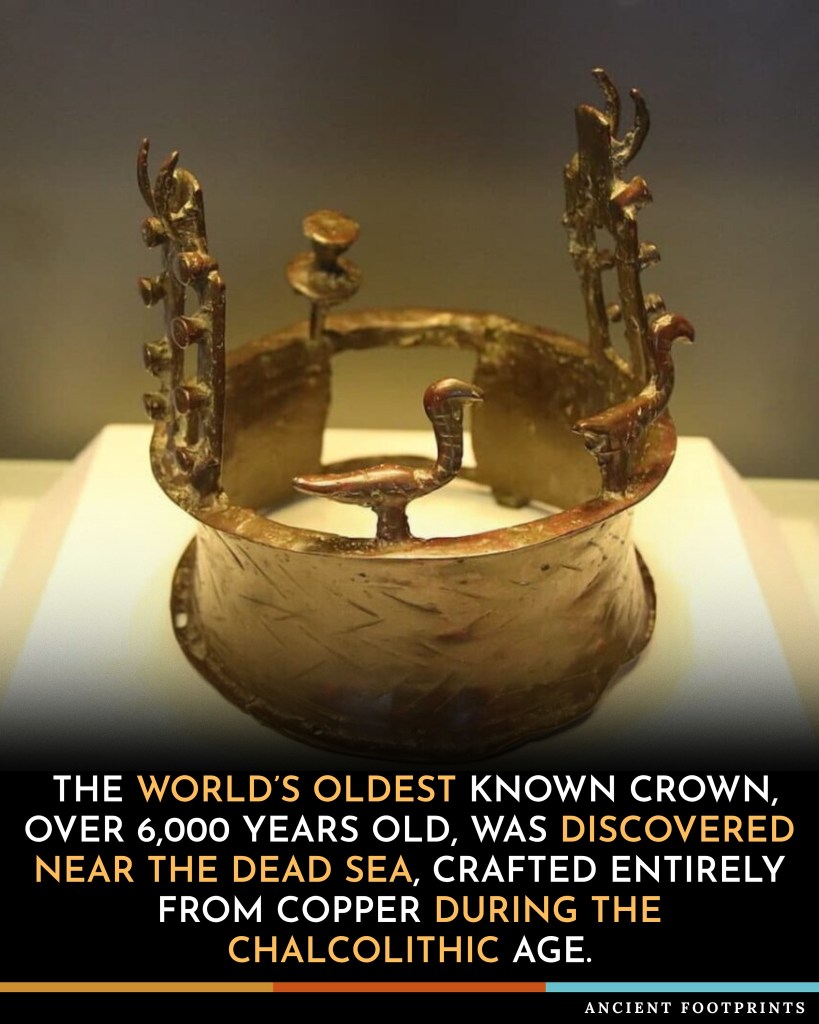 고고학자들이 400점이 넘는 의례용 유물로 구성되는 나할 미슈마르 보물Nahal Mishmar Hoard에서 이 원통형 순동 왕관을 발견했다.