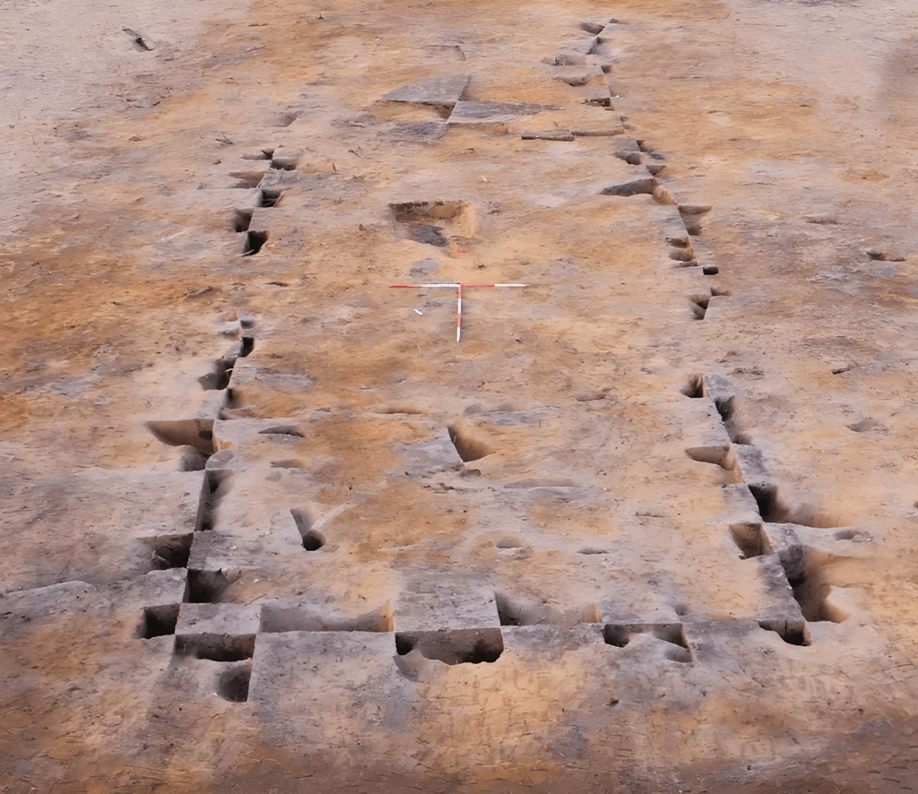 기둥 구멍과 보 슬롯beam-slot construction 구조로 이루어진 이 건물들은 100m에서 350m 사이 서로 다른 배열로 배치되었다.
