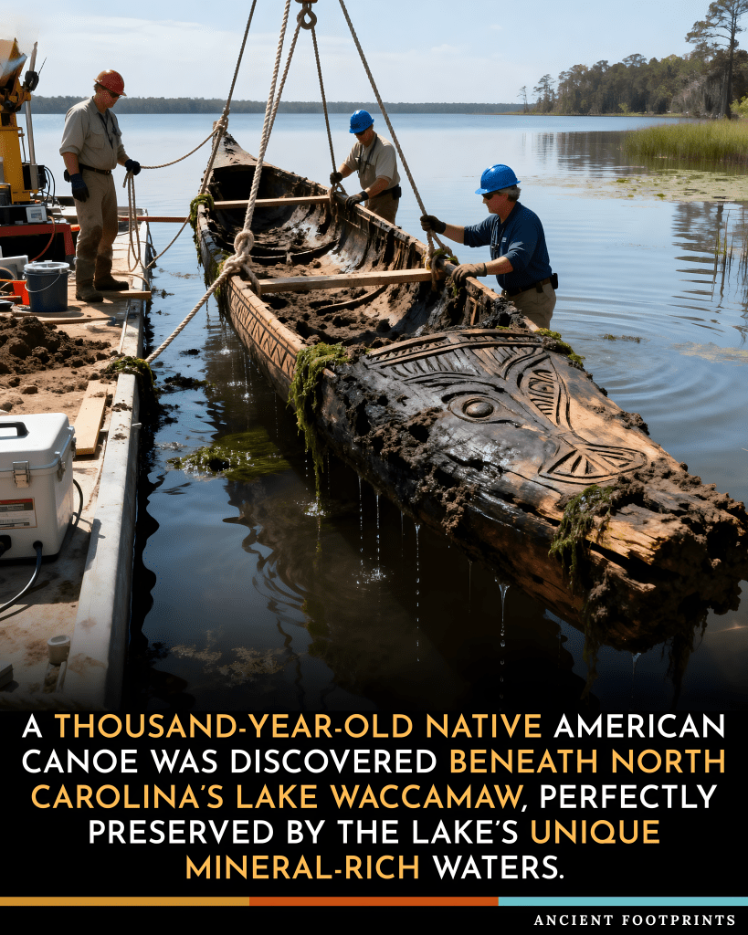 고고학자들이 미국 노스캐롤라이나 주 와카모 호수Lake Waccamaw에서 이 카누를 발굴했을 때, 매끈하게 조각된 선부터 전체적인 형태까지 카누가 얼마나 온전하게 보존되어 있는지에 감탄했다.