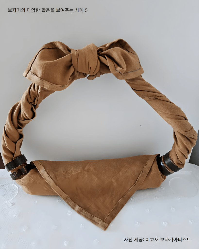 보통은 정신문화를 기물로 표현하는데(가령 다도에서 다기처럼) 보자기는 기물이 정신문화 즉 철학적 사유의 단초로 연결되는 독특한 경험이기도 했습니다. 하여 보자기는 저에게 “얼마나 유연할 것인가 또 유용할 것인가, 포용할 것인가!”라는 사고와 태도를 대변하는 소중한 유물이 되었습니다.