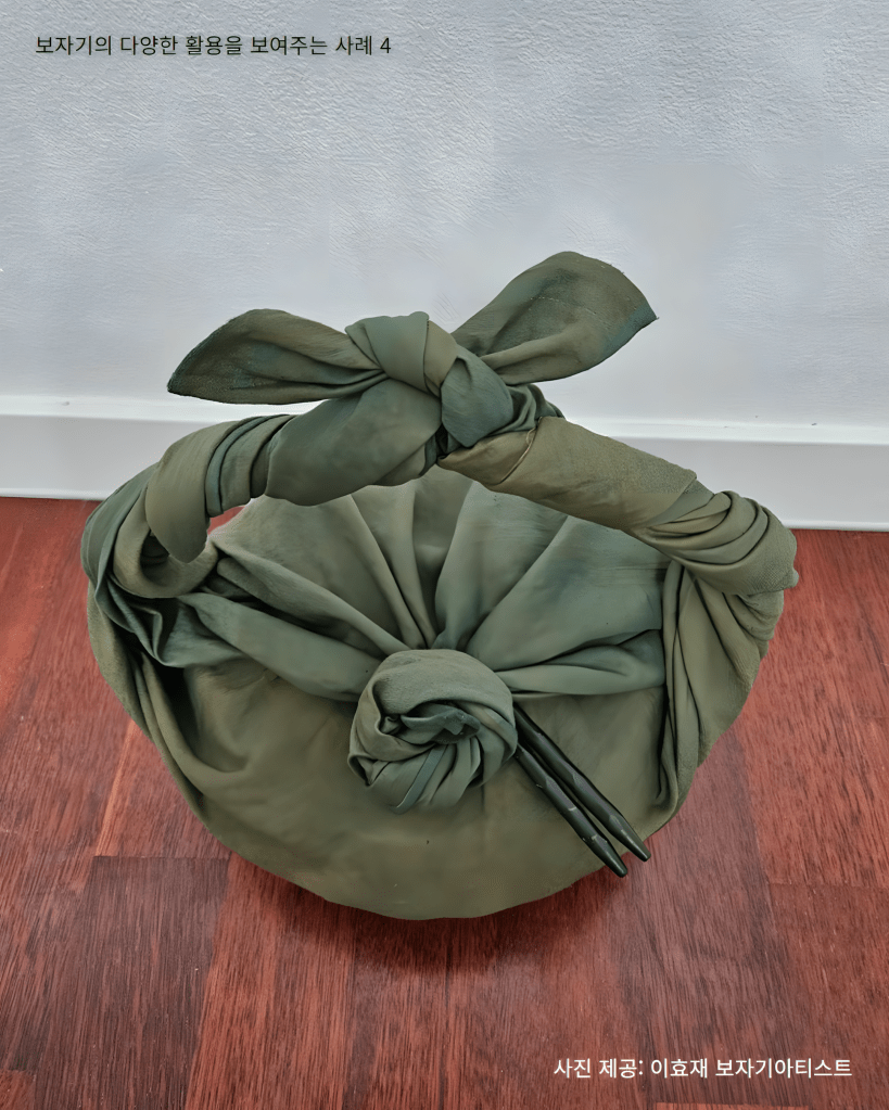 Dr. Lee O-young said, “Randoseru (backpacks) represent Japanese culture, while Bojagi represents Korean culture.” Bojagi can transform into covers, wrappers, and mats.