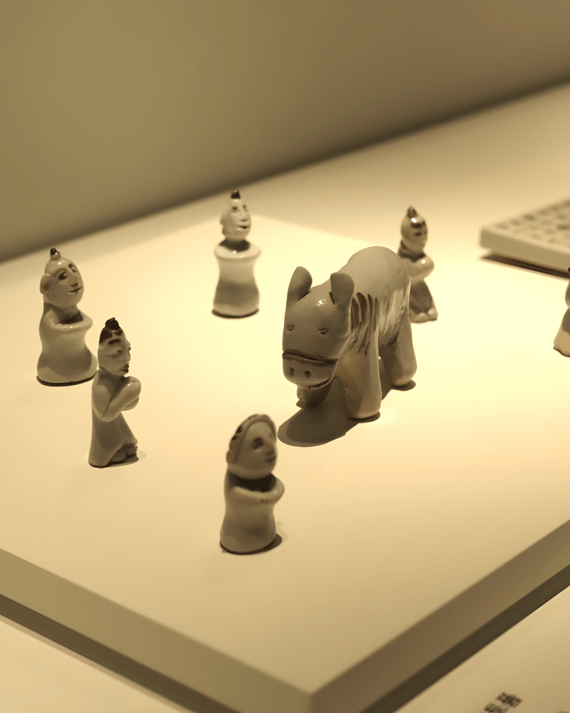 Miniature figures, horses show the typical funeral customs of the time—small objects with big historical insight.