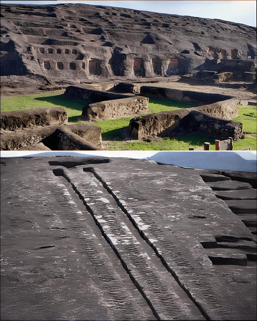 This grand stone platform, which spans 220 meters, 721 feets, by 60 meters, 197 feets, is adorned with mysterious symbols, channels, and figures. Although it is commonly labeled a fortification, many experts suggest it functioned as a ceremonial or astronomical hub.