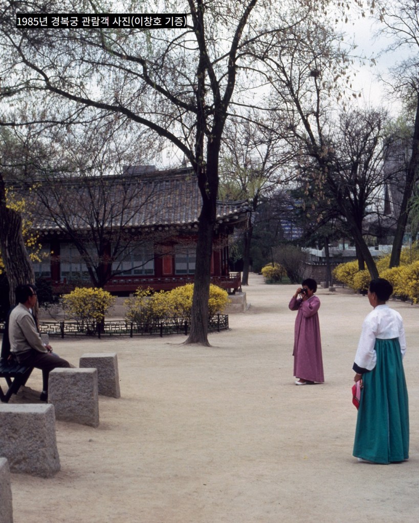 The appearance of people wearing hanbok, holding a camera or smartphone in one hand and a bag in the other, visiting Gyeongbokgung Palace, and taking photos to make memories has not changed over the years.