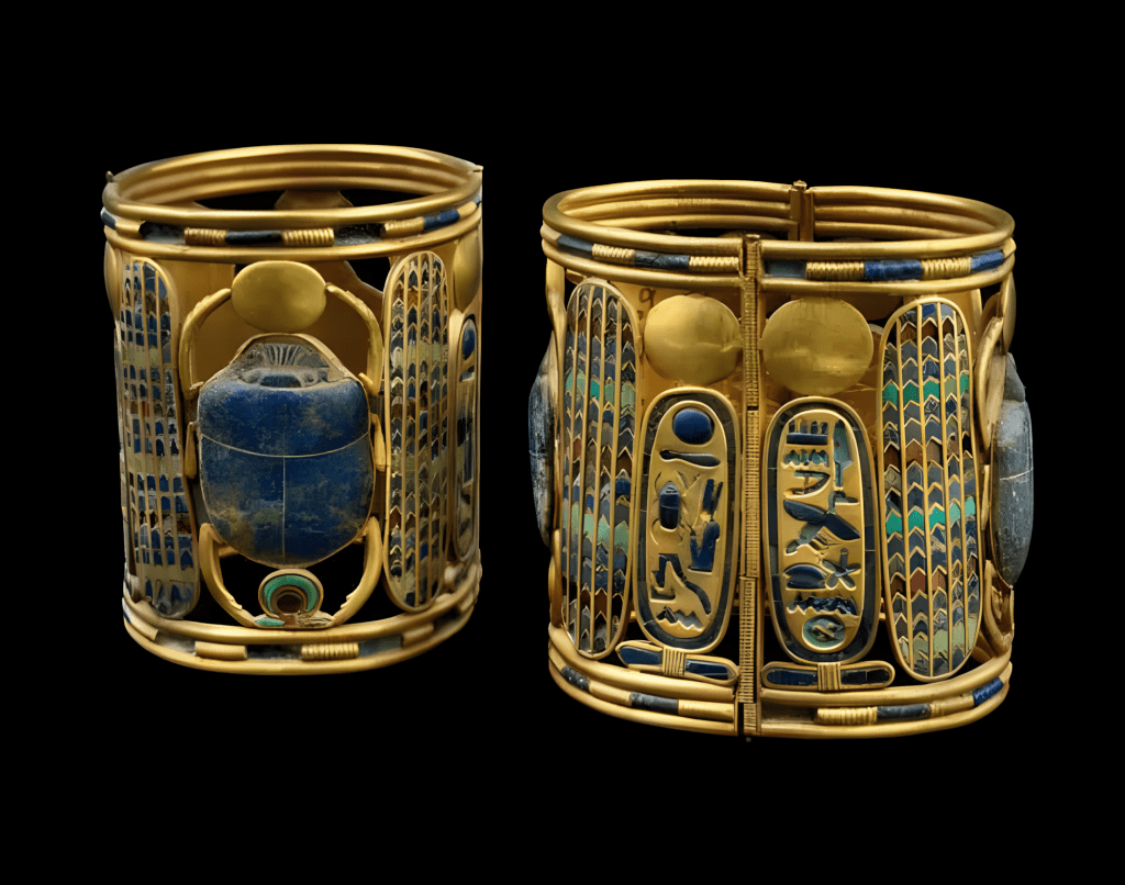 프수센네스 1세의 이 독특한 팔찌는 주요 특징으로 날개 달린 풍뎅이가 장식되어 있다.
