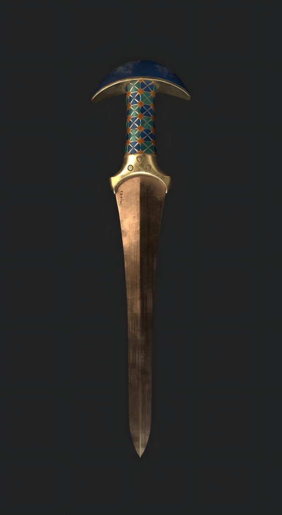 이 단검은 페니키아의 비블로스Byblos나 크레타에서 수입되었거나, 이집트 왕실의 외국 장인이 제작했을 것이라는 설이 제기되었다.