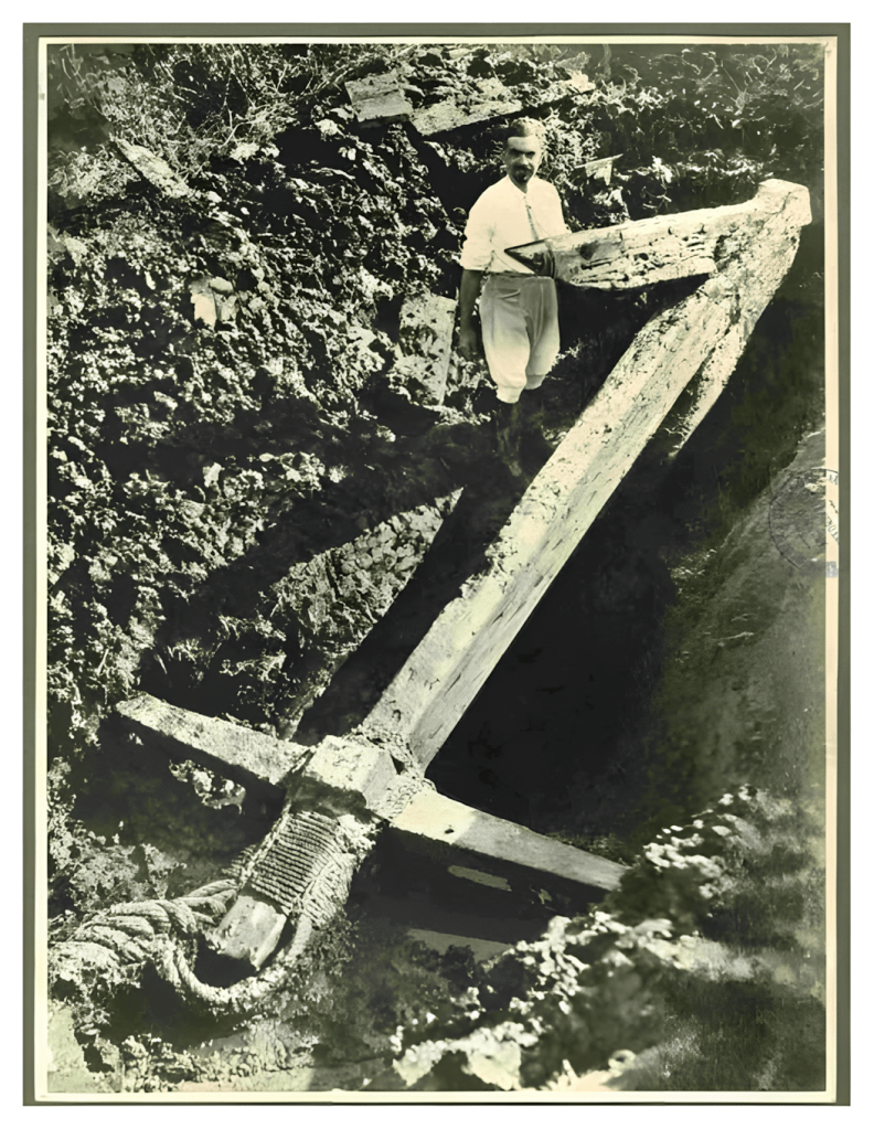 로마 황제 칼리굴라Caligula가 소유한 호화 선박으로 추정되는 네미호Nemi ships 고대 닻 중 하나를 보여주는 놀라운 사진이다.