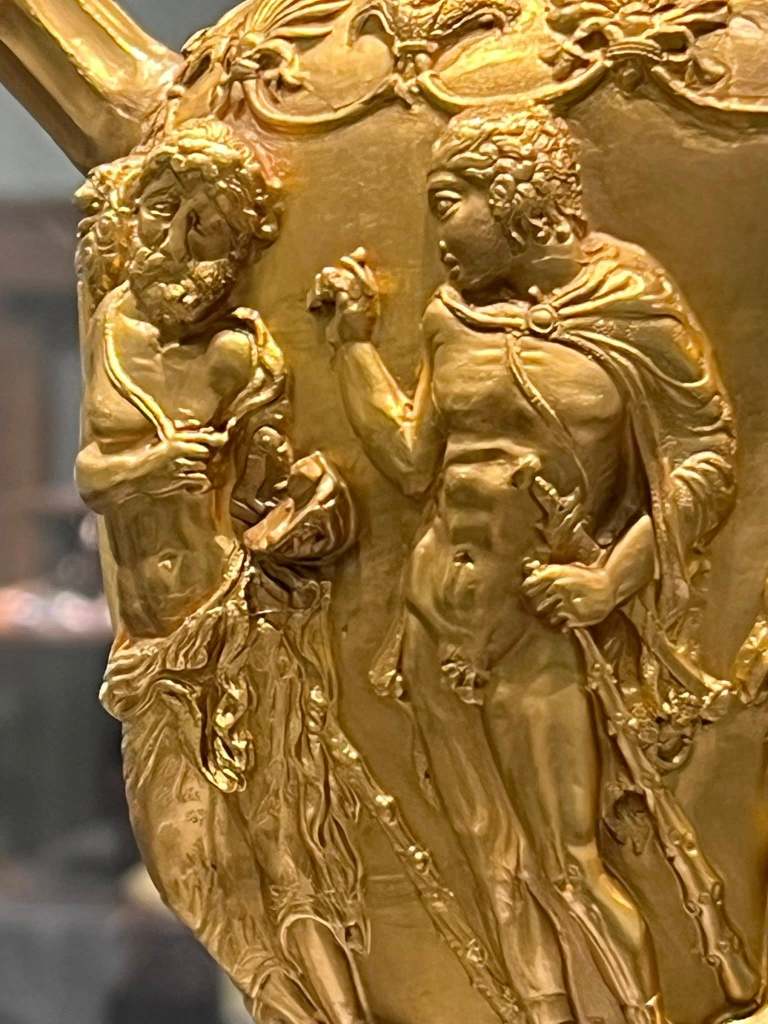 두 개 손잡이는 조각된 켄타우로스 형상을 하며, 본체에는 풍부하게 조형된 이야기 장면들이 담겼다.