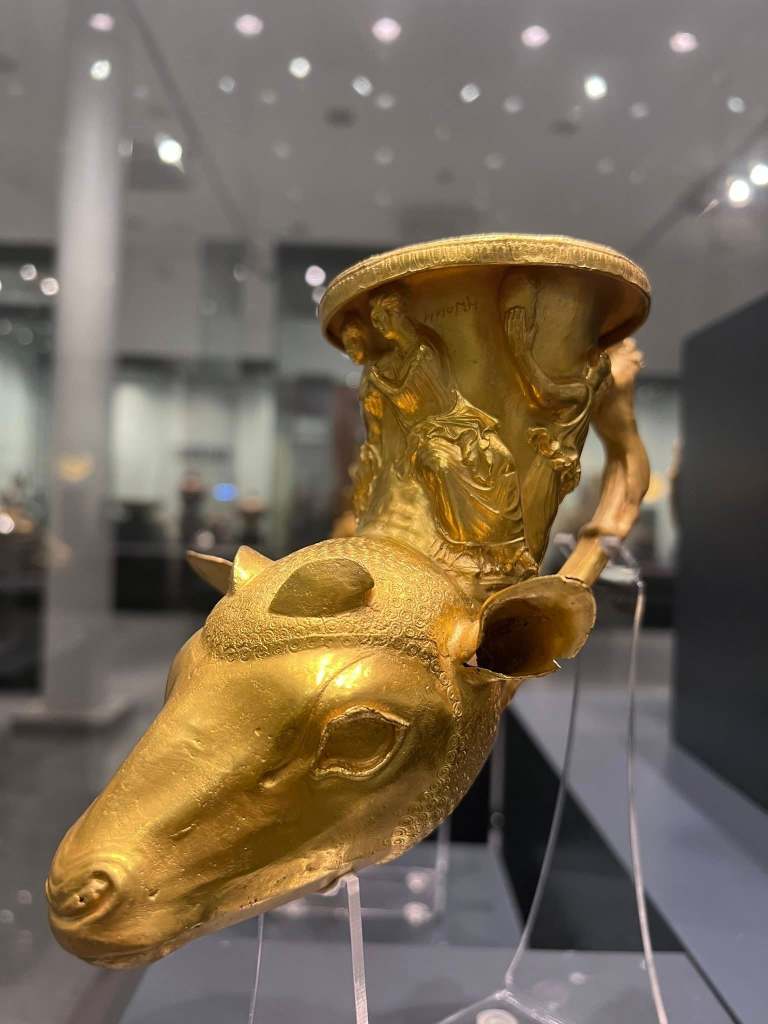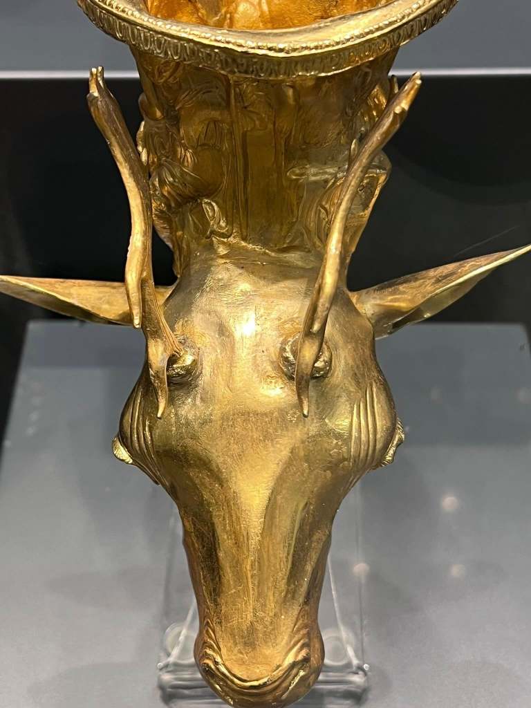 이에는 화려한 암포라-리톤amphora-rhyton, 여성 머리 모양 리톤 잔rhyton cups 3개, 동물 머리 모양 리타rhyta 3개, 그리고 피알레phiale (제례용 헌주 사발itual libation bowl)가 포함된다.