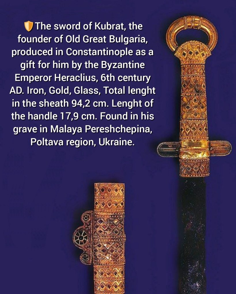 쿠브라트는 이 검과 다른 귀중한 물건들을 그의 친구였던 비잔틴 황제 헤라클리우스(610-641)로부터 선물로 받았다고 전해진다.