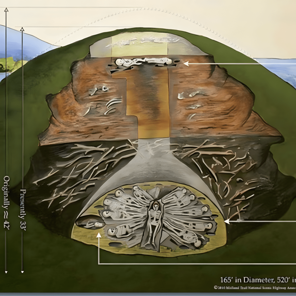 기원전 250년에서 기원전 150년 사이에 만든 이 마운드는 꼭대기 부근에서 두 구 해골을 먼저 발견했다.