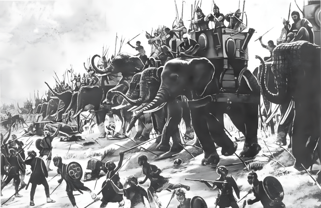 이때 그가 코끼리 부대를 이끌었다는 사실은 널리 알려져 있다.