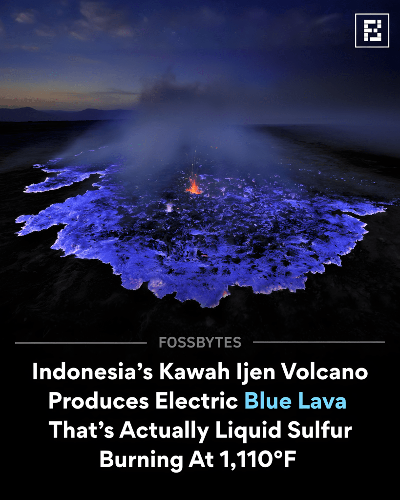 At night, this lava turns blue and it’s not a magic trick. It’s sulfuric acid burning at over 600°C (1,112°F) creating electric blue flames.