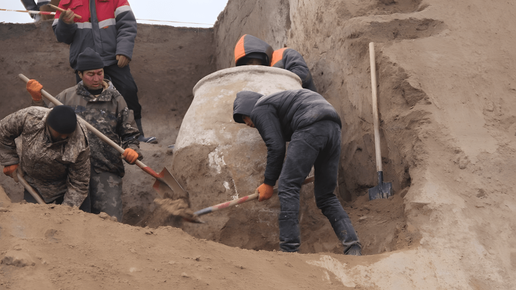 (2024년 3월 9일) 키르기스스탄 오시Osh 주 우즈겐Uzgen 마을에서 최근 진행한 고고학 발굴 조사에서 높이 1.75미터에 달하는 ‘훔hum’으로 알려진 도기가 발굴되었다.