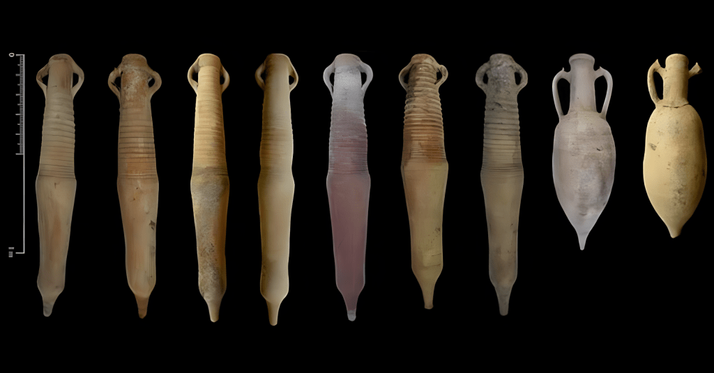 The necropolis contained 23 individuals, including men, women, children and adolescents, buried in simple graves, pottery coffins or large amphorae. Artefacts such as complete amphorae and gold earrings of a young girl were also uncovered.