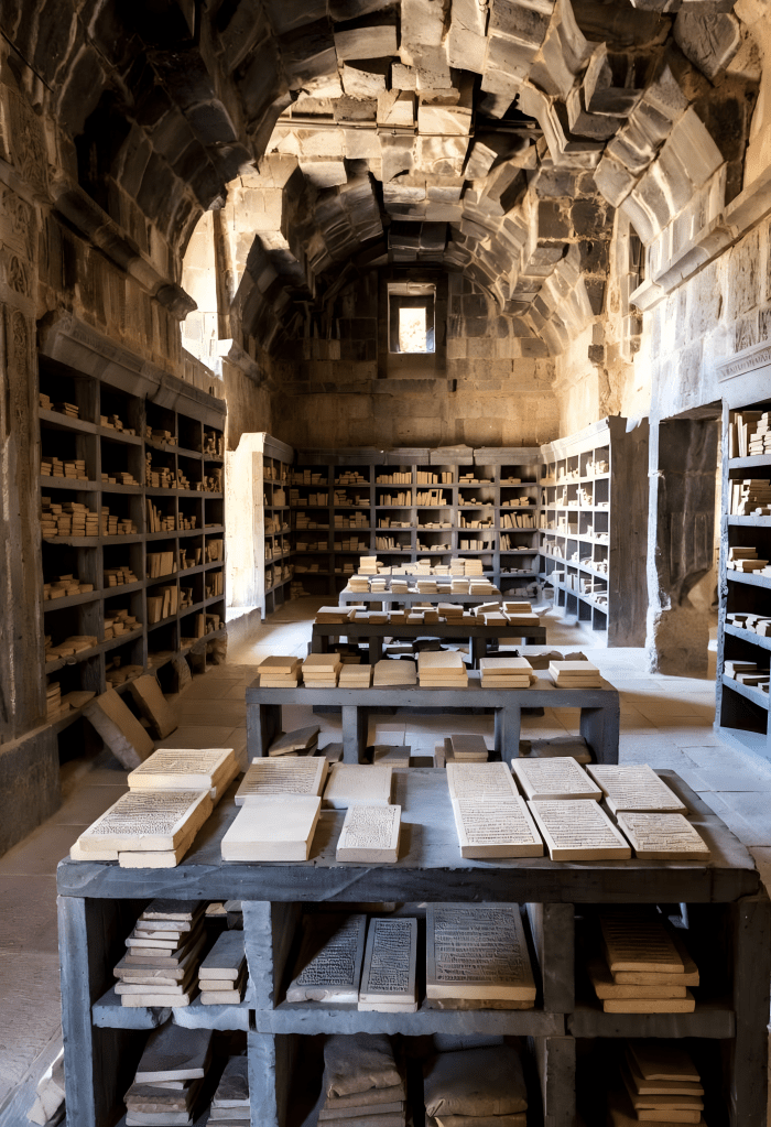 The archives were found in locations such as the Great Fortress (palace), the Great Temple, the Hillside House, and the Upper City temples. These served as state archives, libraries, and storage facilities.