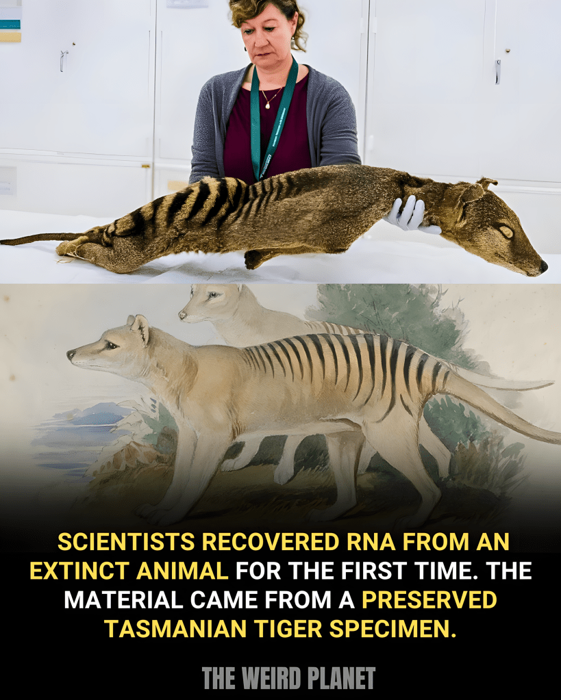 In 2023, researchers successfully recovered and sequenced RNA from the Tasmanian tiger, marking the first time RNA had ever been obtained from an extinct animal. The material came from a 130 year old museum specimen stored under dry conditions.
