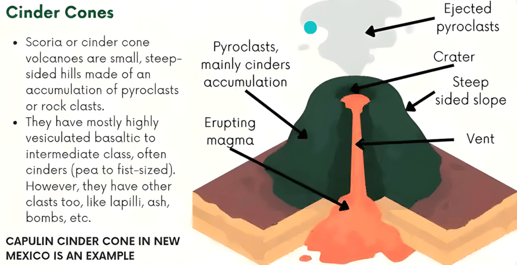 Distribution: Often found in chains or clusters along fissure eruptions, forming spatter ramparts when aligned linearly.