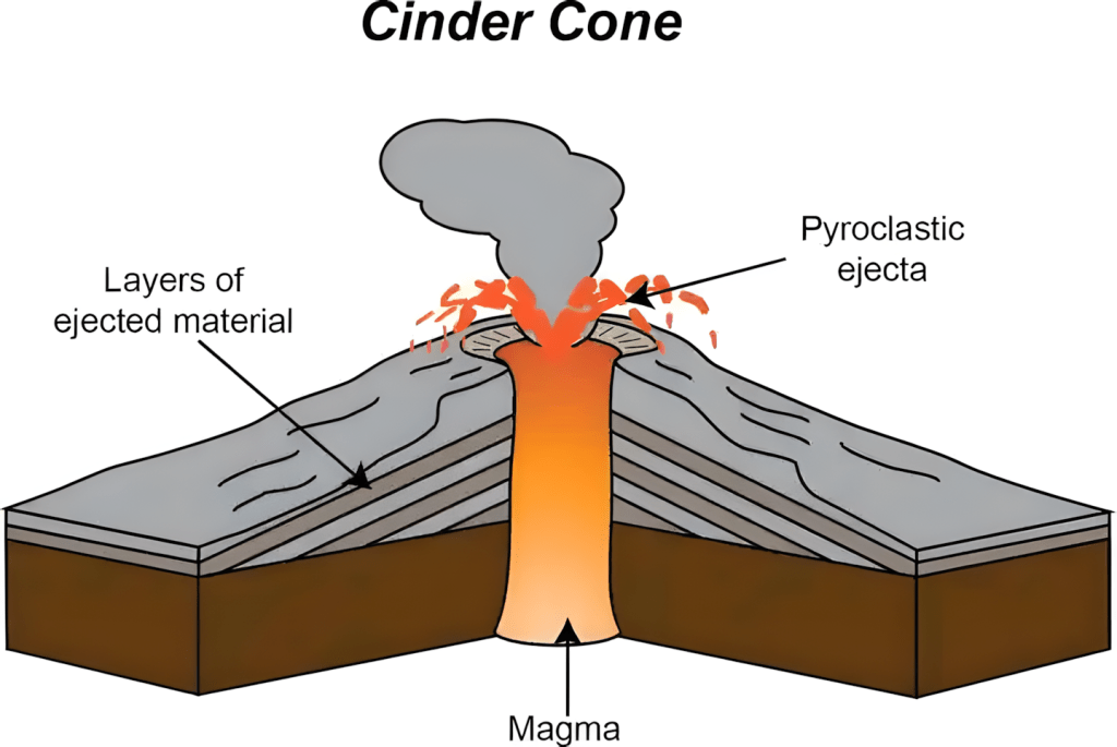 Shape: Cone-like or mound-shaped with steep sides that slope outward from the vent.