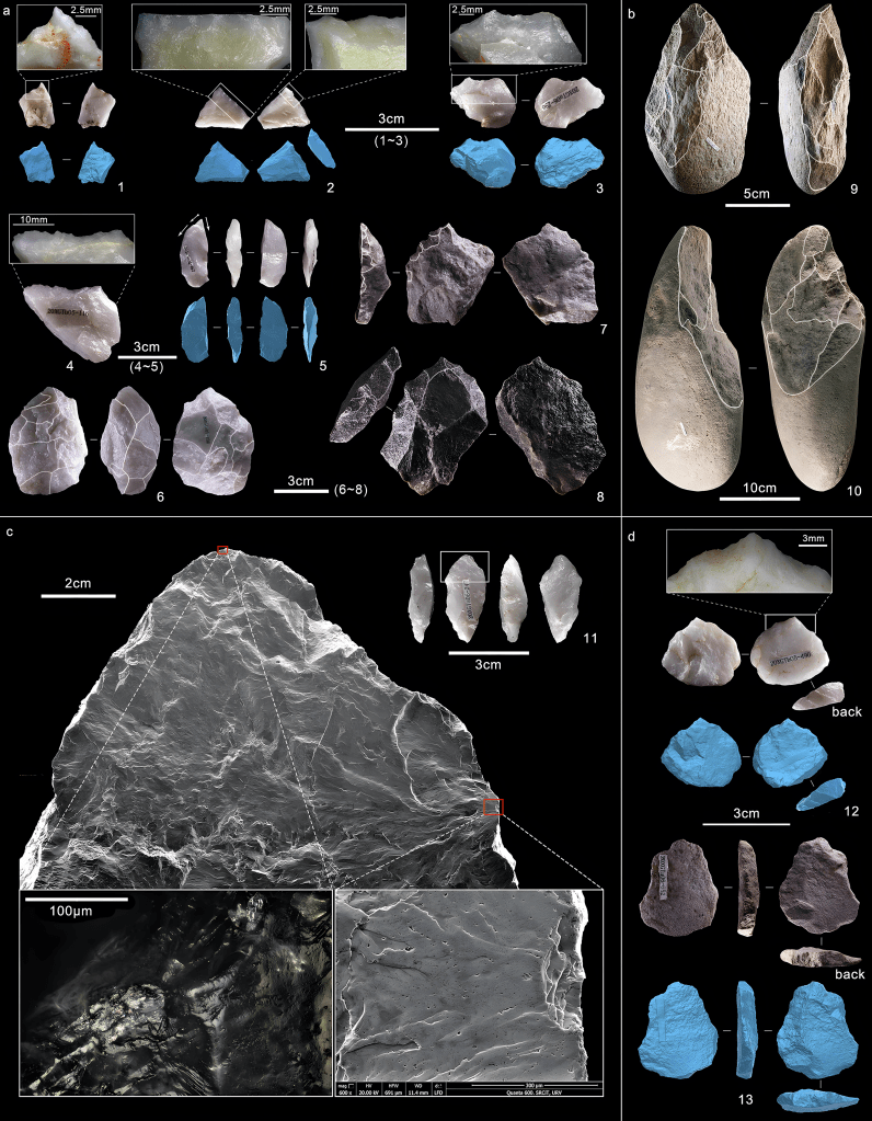 “수십 년 동안 연구자들은 아프리카와 서유럽 호미닌이 상당한 기술적 발전을 보인 반면, 동아시아 호미닌은 더 단순하고 보수적인 석기 제작 전통에 의존했다고 주장했다”고 척추고생물학 및 고인류학 연구소(IVPP) 탐사대장인 양시샤Shixia Yang 박사는 말했다.
