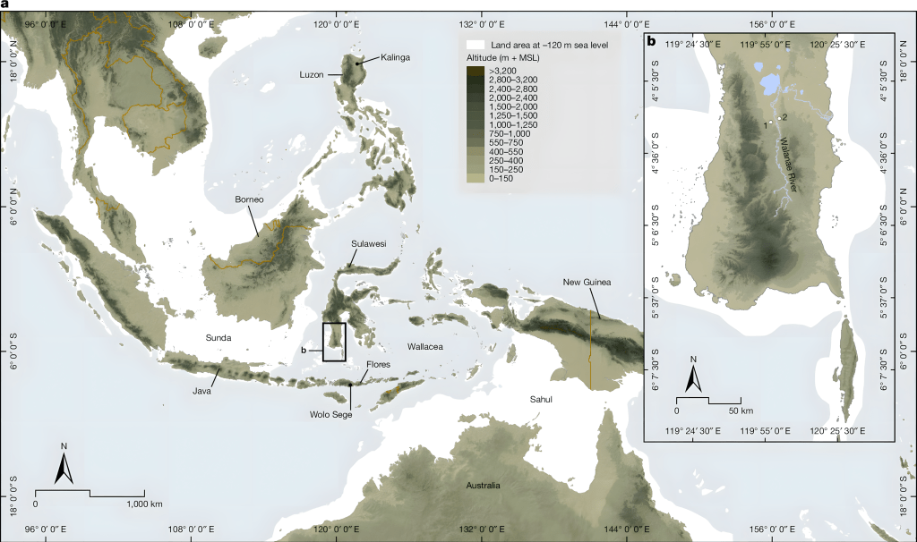 인도네시아 국립연구혁신청National Research and Innovation Agency of Indonesia (BRIN) 부디안토 하킴Budianto Hakim과 호주 그리피스 대학교 인류진화연구센터Australian Research Center for Human Evolution 아담 브럼Adam Brumm 교수가 주도한 연구 “초기 플라이스토세 술라웨시의 호미닌”이 네이처Nature에 발표되었다.