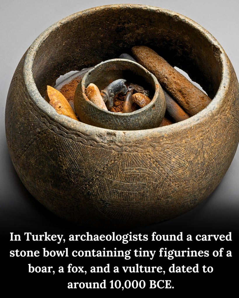 At Karahantepe, a neighbor of Göbeklitepe, excavations have revealed an object that may represent one of humanity’s earliest three-dimensional narratives. The artifact is an intricately decorated, bottomless stone bowl discovered in 2019 and dated to roughly 12,000 years ago.