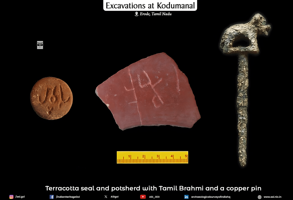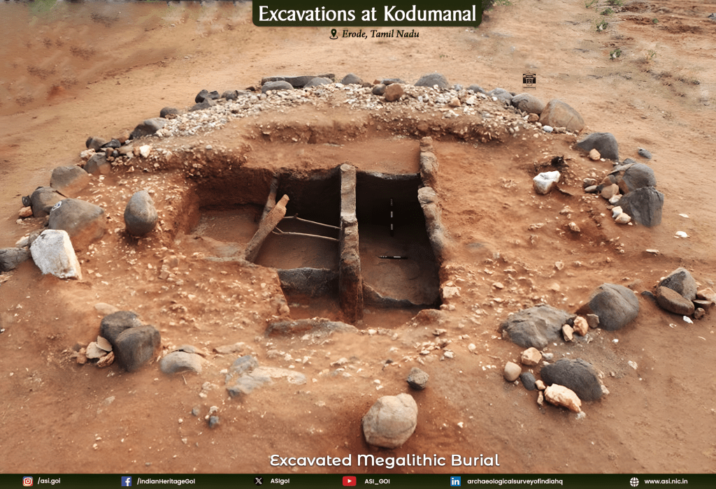 During the field season of 2017–18, the Archaeological Survey of India (ASI) carried out systematic excavations at Kodumanal, a habitation-cum-burial site in Erode District, Tamil Nadu. The excavations revealed Early Historic cultural remains dated to approximately the 4th-3rd century BCE.