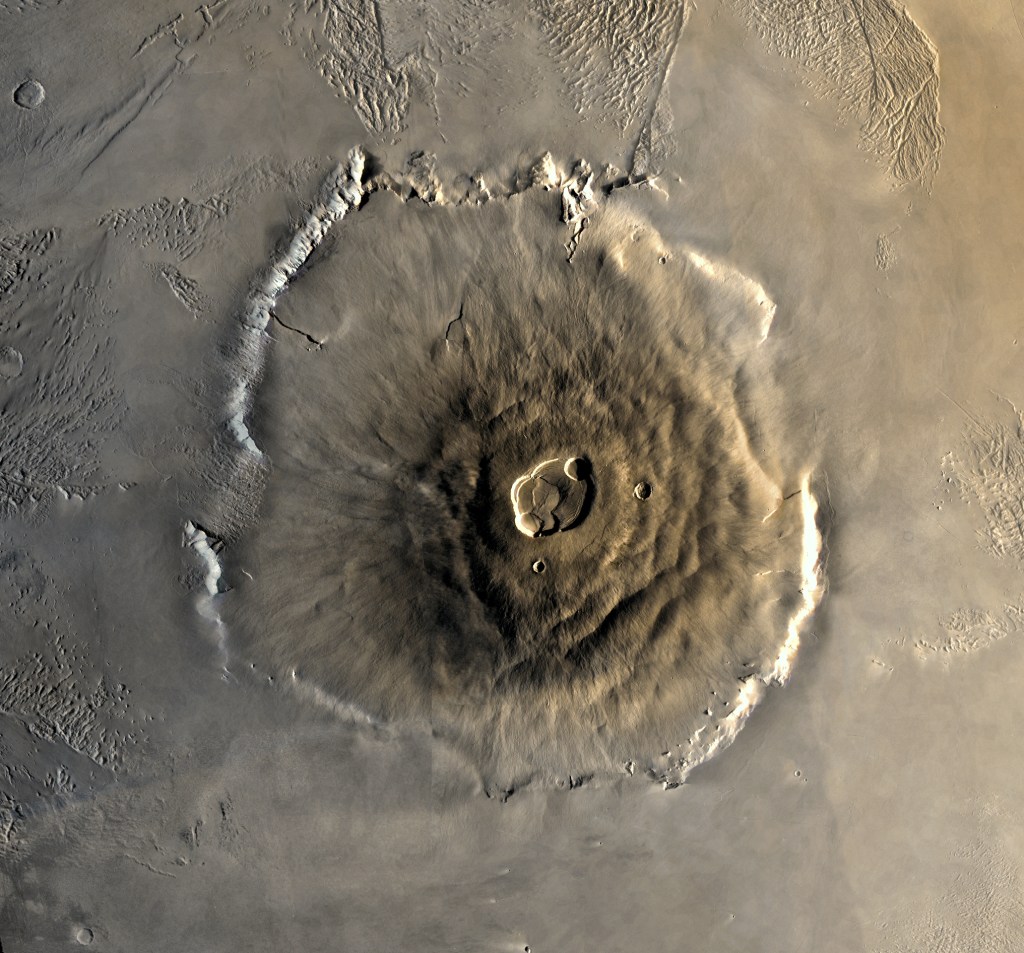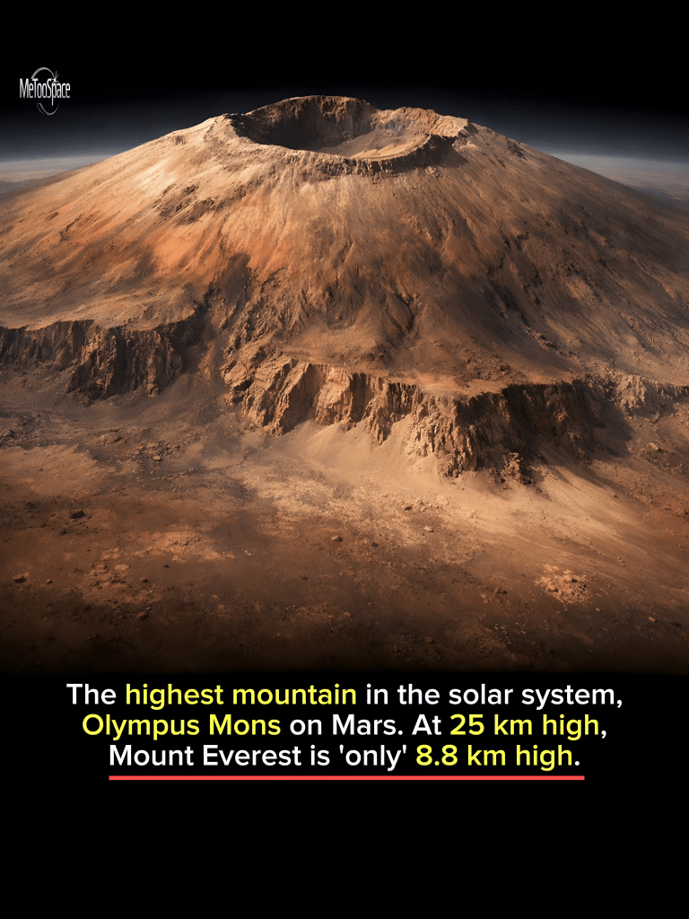 태양계 전체에서 가장 높은 산은 화성 표면에서 솟아오른 거대한 순상 화산인 올림푸스 몬스Olympus Mons[프랑스어로 읽으면 몽?인가?]다.