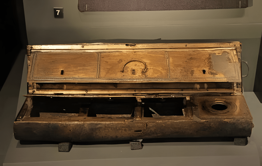 기원전 약 350년 무렵, 그리스 북부 테살로니키Thessaloniki 한 엘리트 남성 무덤에서 휴대용 청동 필기구 케이스가 발견되었다.