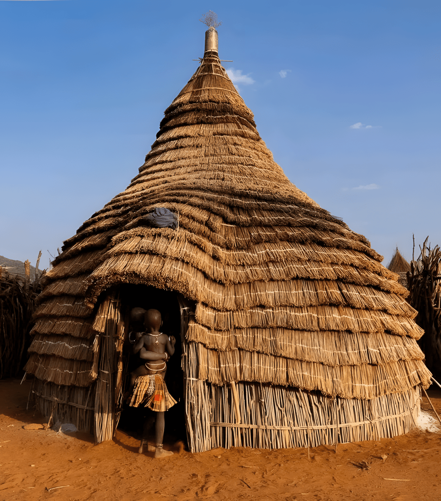 아프리카 남수단South Sudan 동부 에콰토리아Eastern Equatoria에 사는 토포사족Toposa people 전통 가옥 중 하나다.