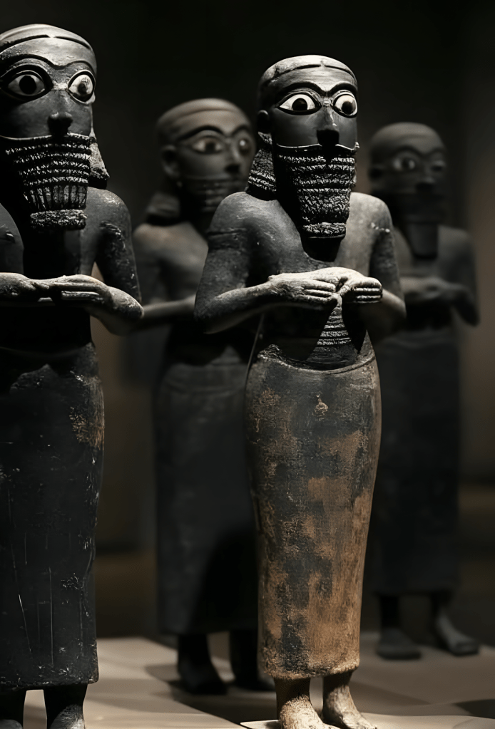 이 조각상들은 고대 메소포타미아 초기 왕조 시대인 기원전 2900년에서 2550년 무렵에 만들었다.